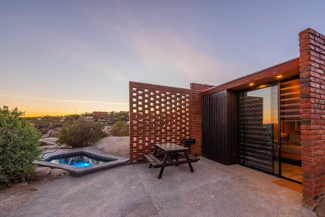 Está equipada con cama queen, cama twin, ventilador, calentón, baño completo con agua caliente, estufa de dos hornillas, refrigerador, lavaplatos y utensilios para cocinar. Tiene aire acondicionado, WiFi satelital, televisión y dish network. En el exterior cuenta con alberca privada climatizada, dos camastros, asador, hoguera y banca.